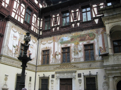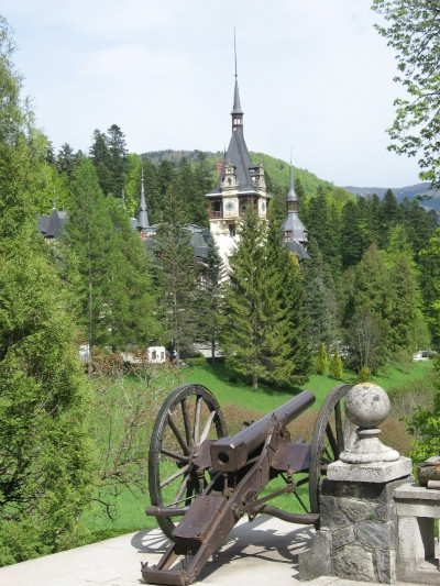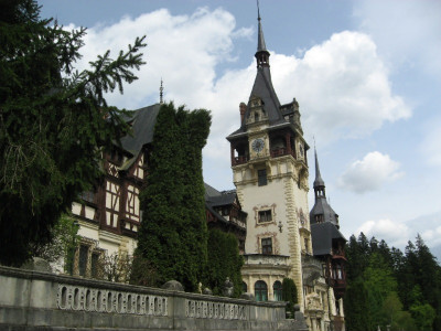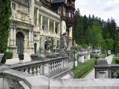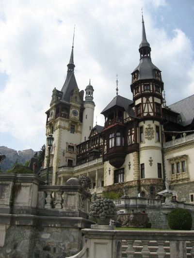 루마니아 최초의 황제 카롤 1세의 여름궁전 펠레쉬성 멀리 눈 덮힌 산이 보인다.