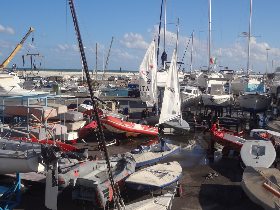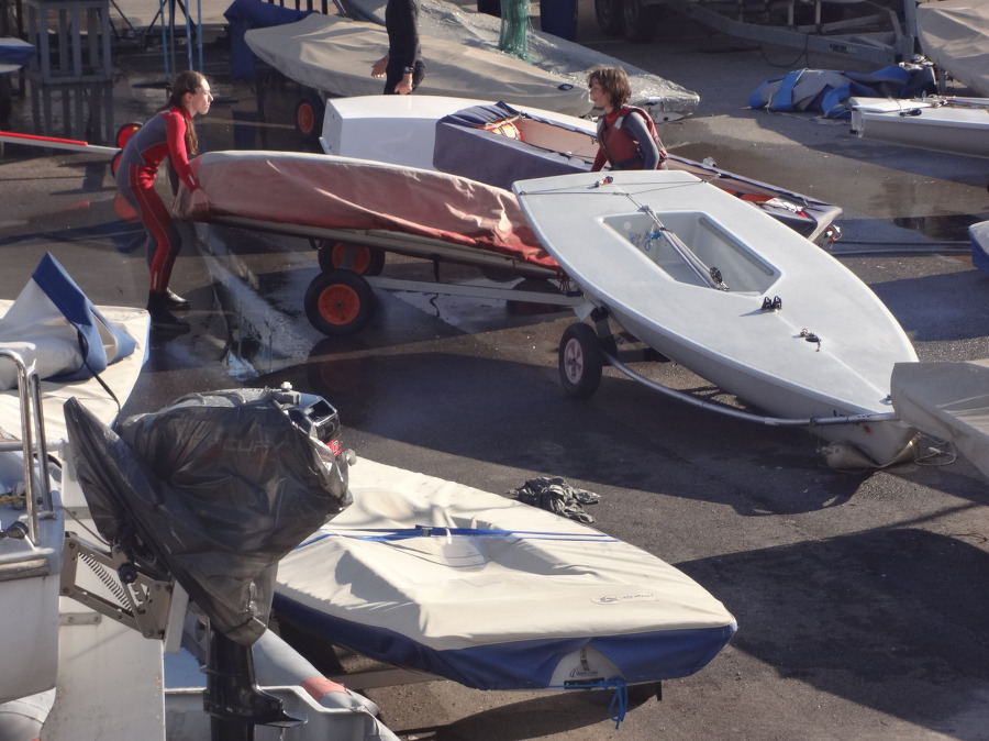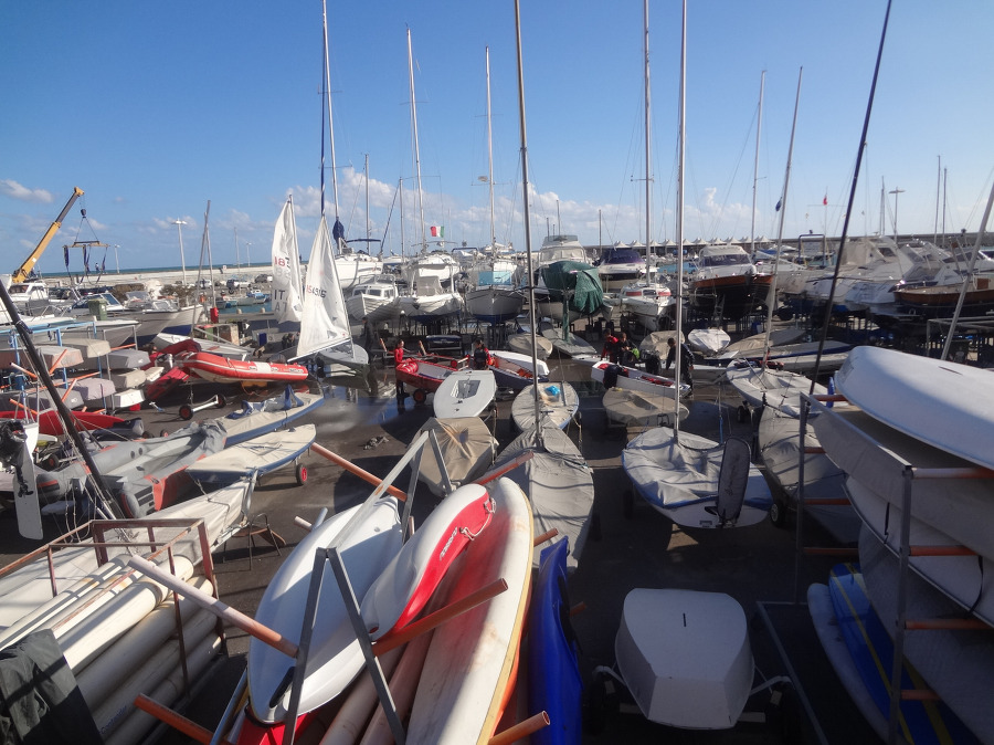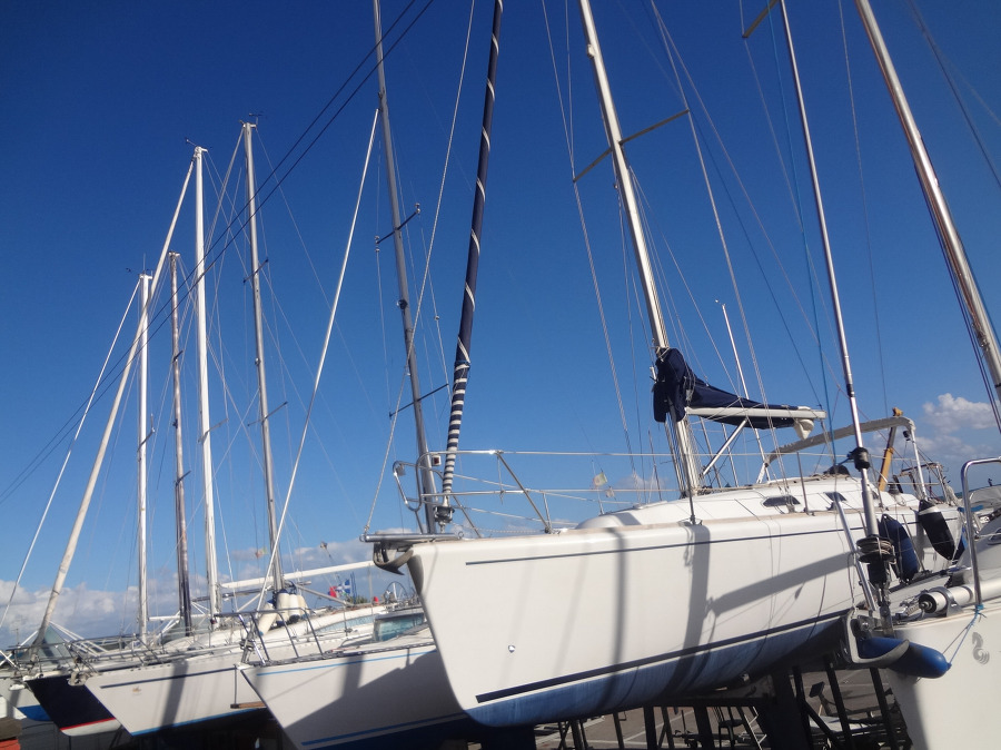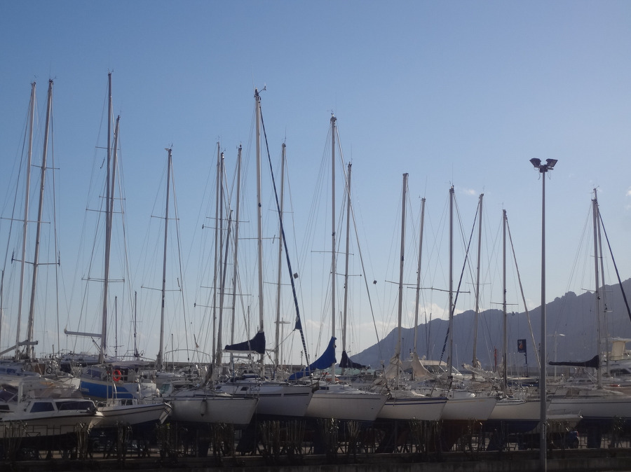 해변으로 가니 요트며 보트 들이 해변에 2미터 쯤 되는 대 위에 올려져 있는 모습을 본다.