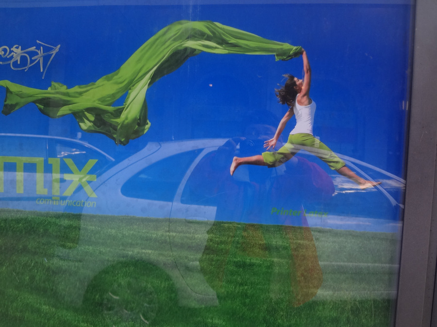 그러고는 비키니 차림의 예쁜 아가씨가 나오는 광고판을 보는데....
