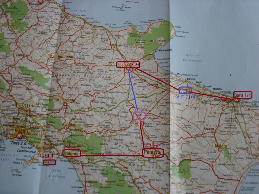 이탈리아 동부 바리 Bari 에 내려서는 기차를 타고 북쪽으로 달려 포자 Foggia 에 도착한다.