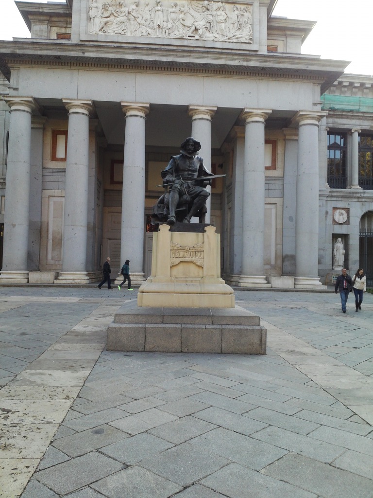 프라도 미술관이죠. 여기 외부에는 2개의 동상이 있어요. 지금 보이는 것이 벨라케즈 동상이죠.