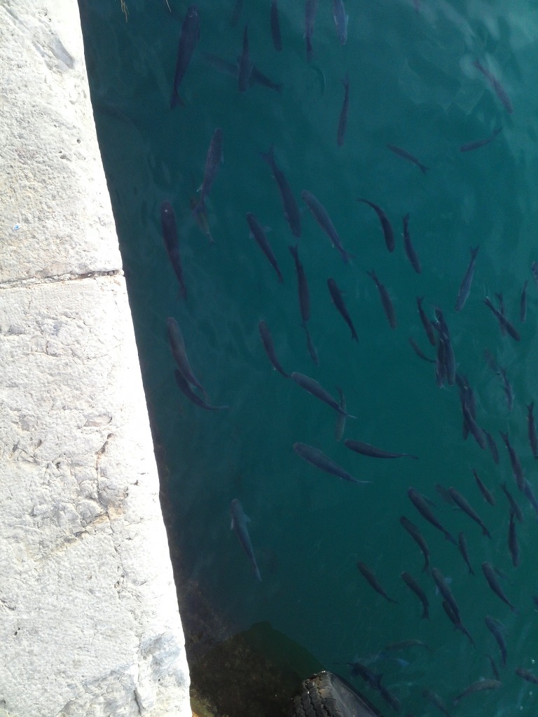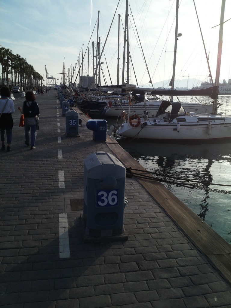 말라가 해안에 도착했어요. 보이나요? 사진으로는 짐작이 안 되겠지만 적어도 30센티 급은 되요. 낚시해도 되지만 그물로 퍼 올려도 될 듯해요. 관광객에 익숙한 듯 다가서면 몰려와요.