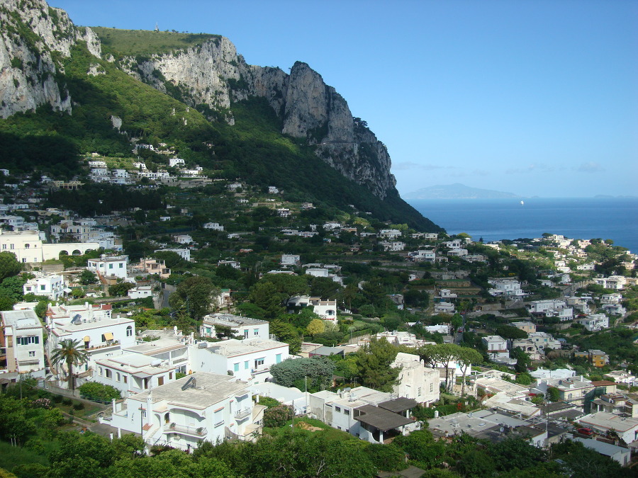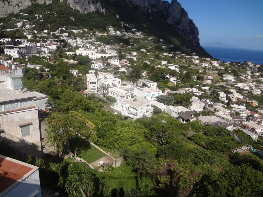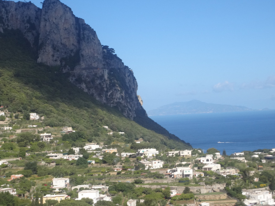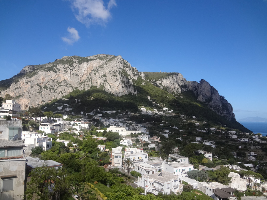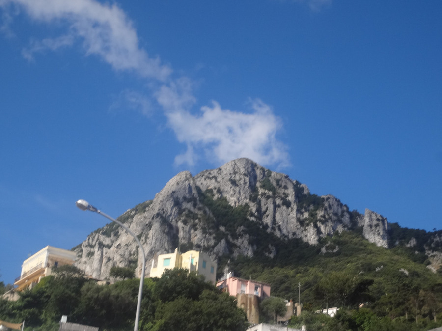 밖으로 나오니 카프리 거리인데 멀리 산 정상에는 성채가 보이고 몇발자국 걷지를 않아