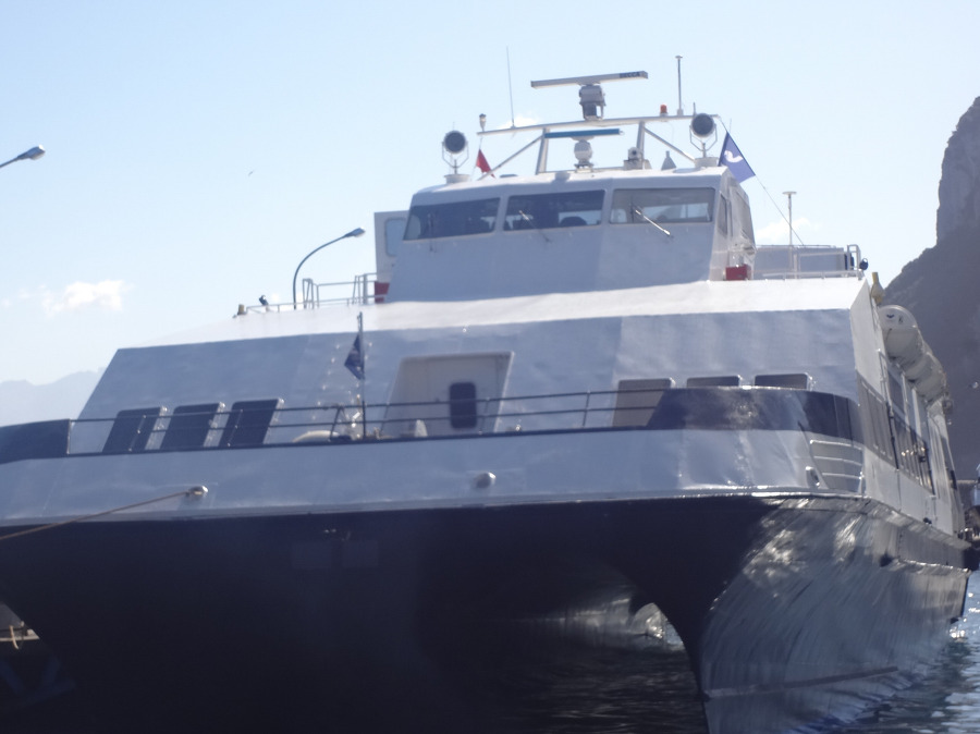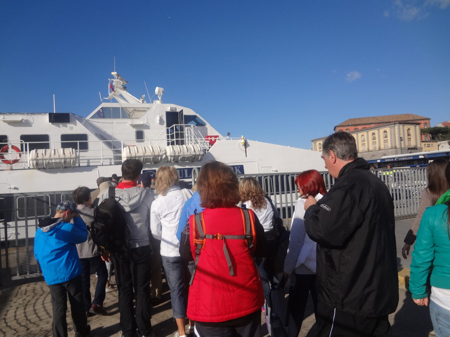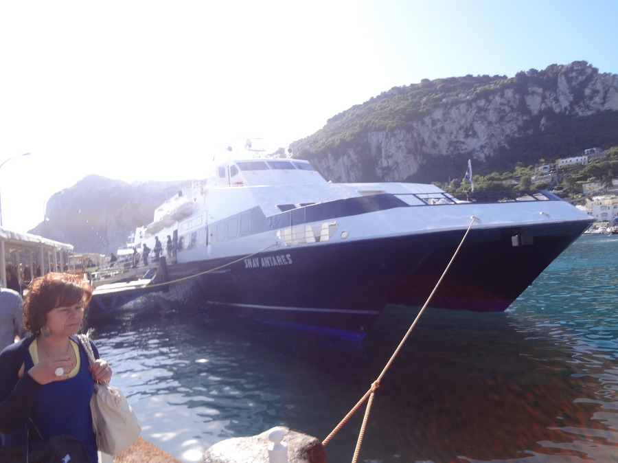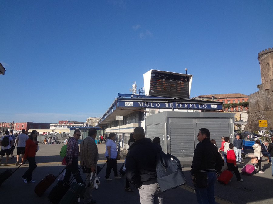 그러고는 나폴리 항구 몰로 베베렐로 항 으로 가서는 카프리 섬 가는 고속 페리 를