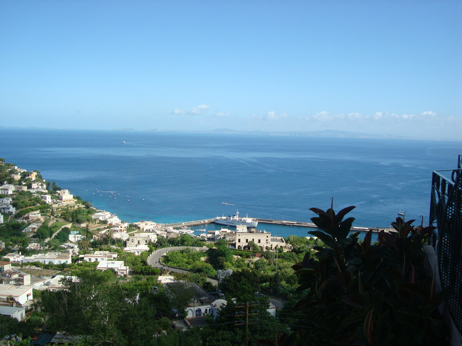 나폴리 쪽으로 푸른 바다가 보이는데 항구에는 보트들이 늘어서 있고....