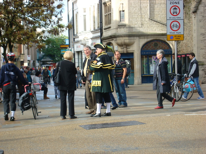 이 네거리에서 17세기 복장 을 한 사람이 관광객들의 발길을 붙잡는데, 잠시 보다가