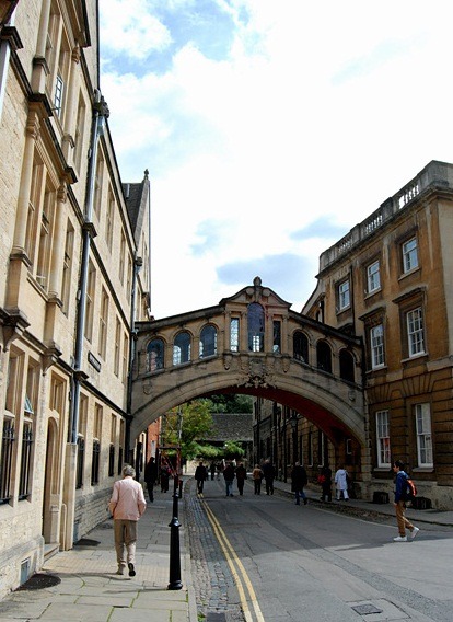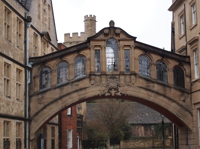 허트포트 칼리지 Herford College 의 신 구관을 연결하는 이른바 "탄식의 다리" 를 봅니다