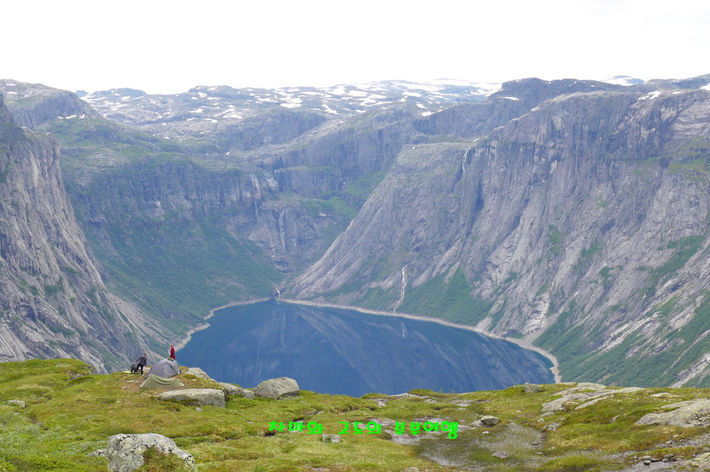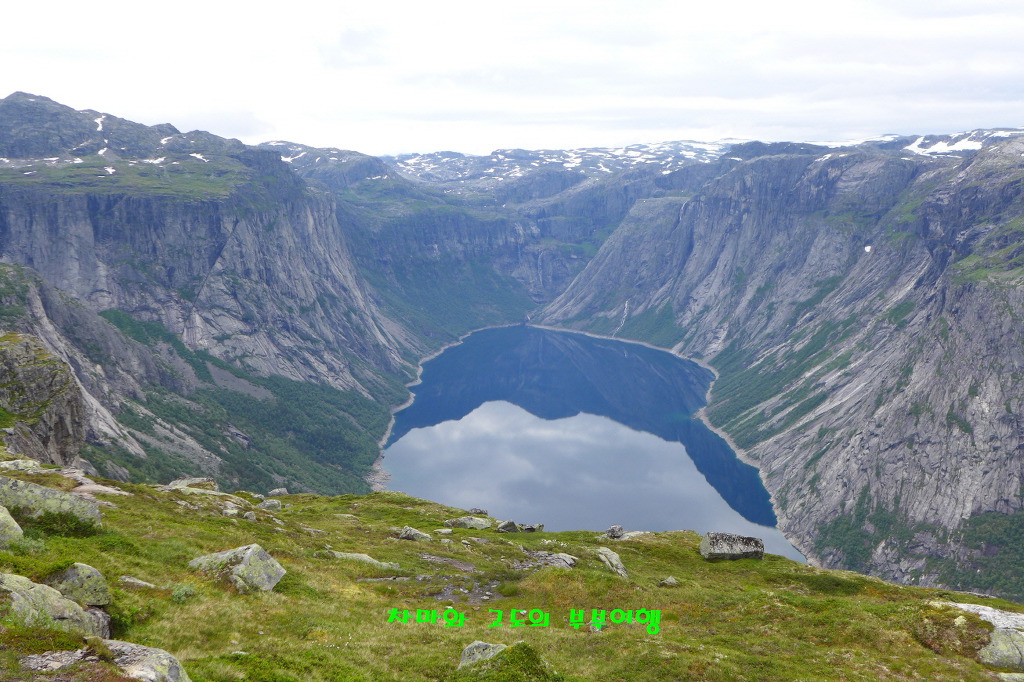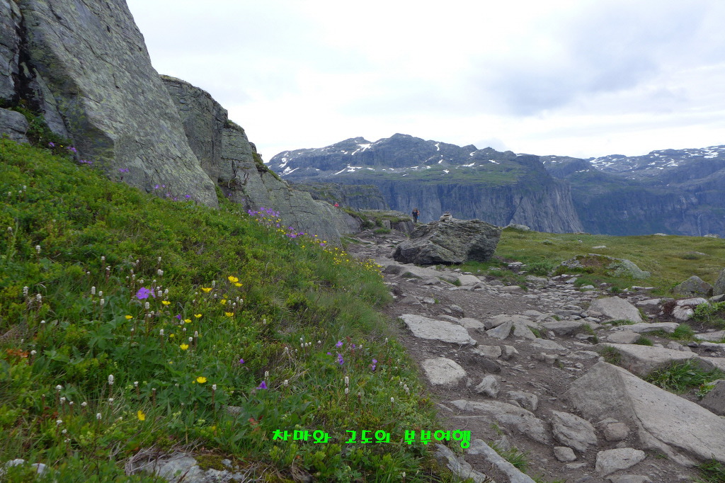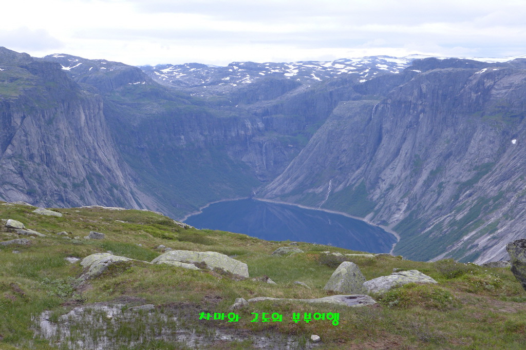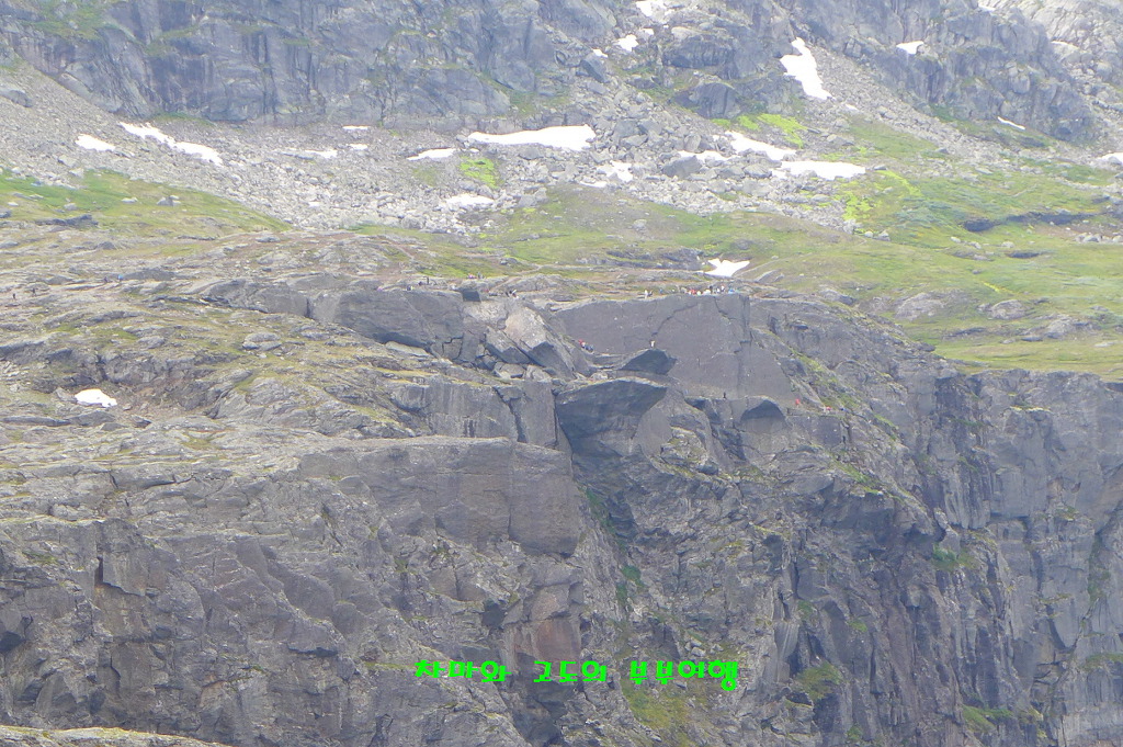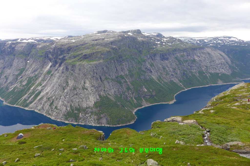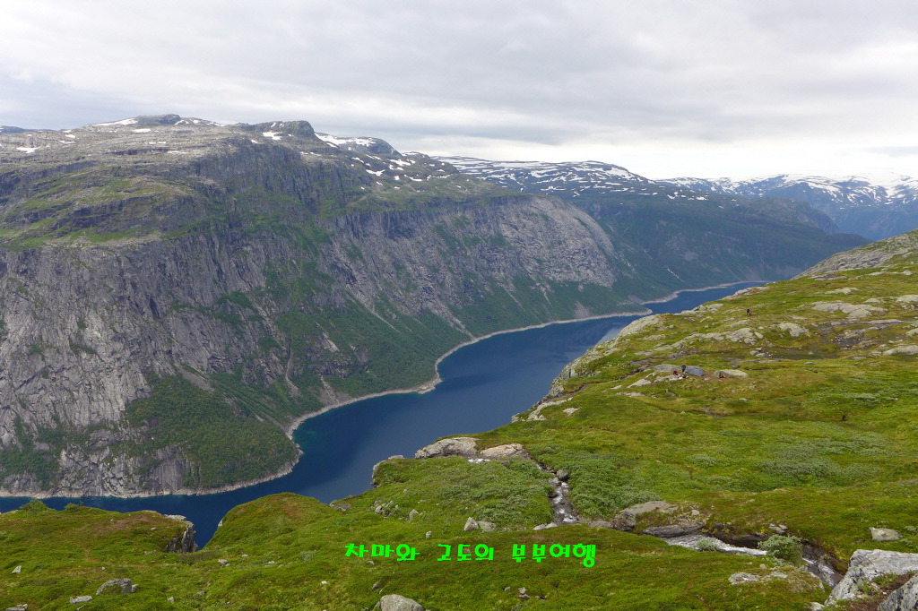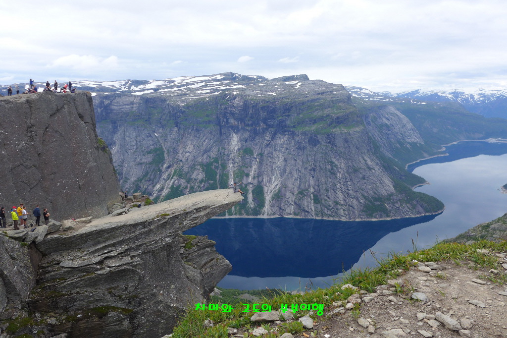 멀리 트롤의 혀 처럼 튀어나온 트롤퉁가가 모습을 보여 줍니다.