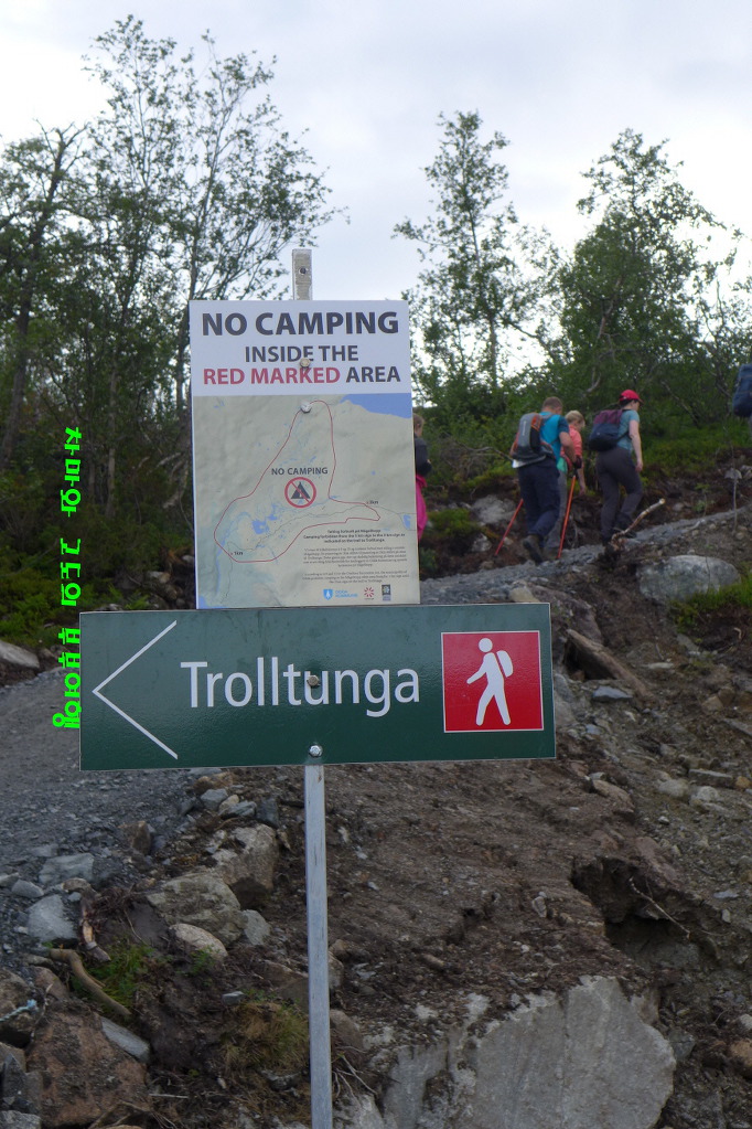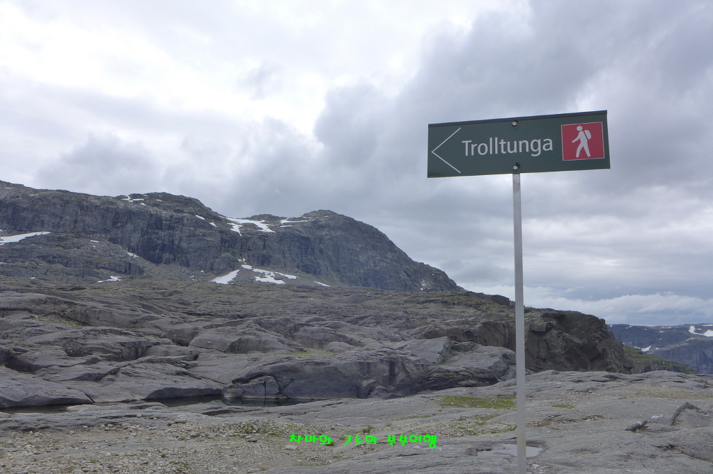 공사중인 도로를 모두 벗어나면 본격적인 트롤퉁가 트래킹 시작을 알리는 표지판이 보입니다 .