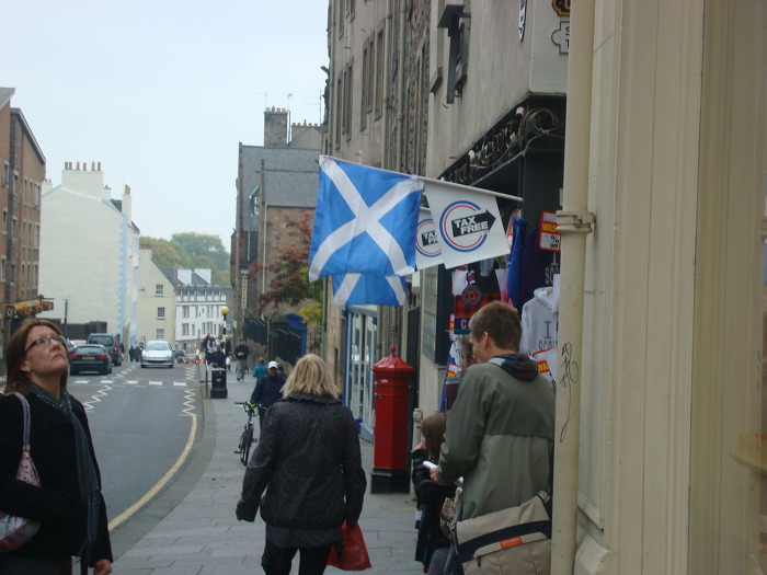 길거리에는 영국의 국기인 유니언 잭 보다는 오히려 푸른 바탕에 흰색 빗긴 가위표