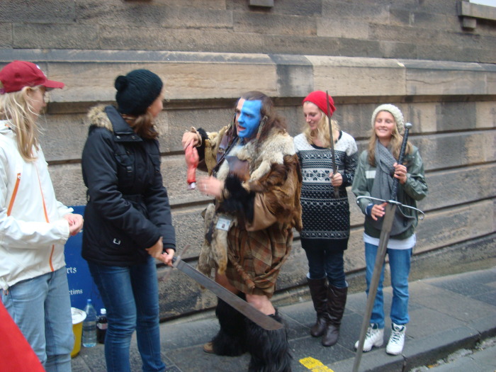 로열마일 거리를 걷는데 온 몸에 푸른 문신을 하고 칼을 든 눈에 익은 녀석이 나타나니
