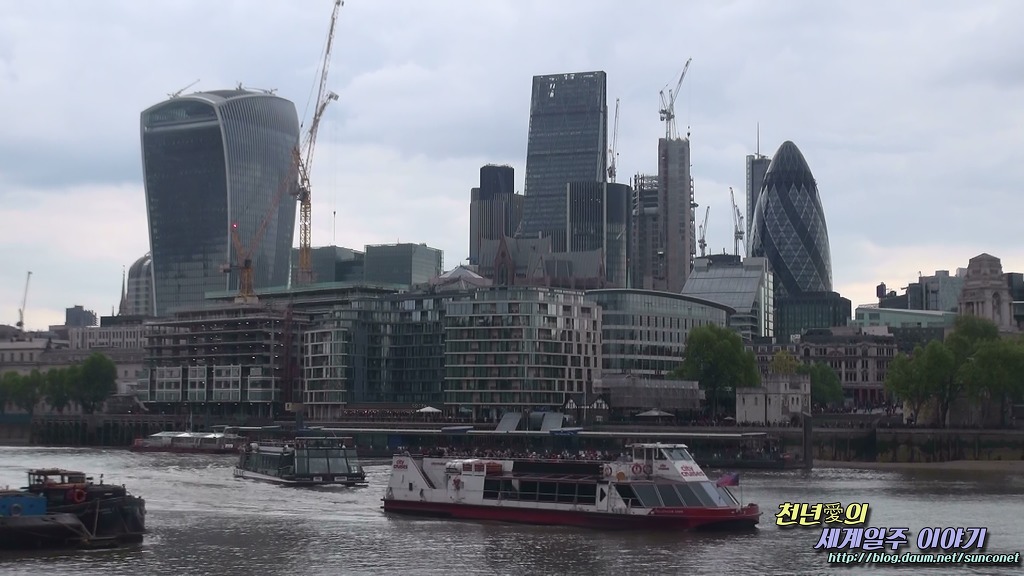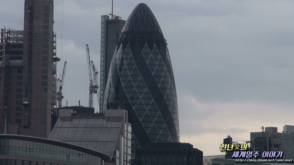 왼쪽 빌딩이 워키토키 빌딩이고, 우측 계란 모양의 빌딩이 거킨 빙딩으로 친환경 최첨단 하이테크 빌딩이라 한다