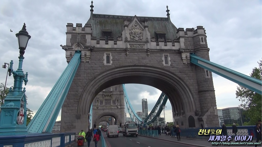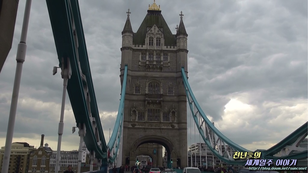 타워 브릿지 첨탑과 현수교 줄의 거대함에 여행자들은 엄청난 광경에 놀란다