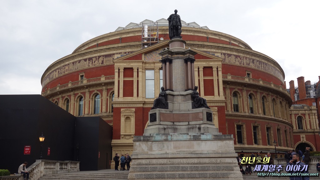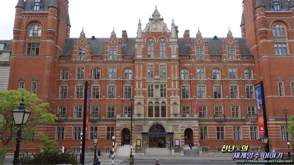 알버트 홀 앞 오른편에 있는 붉은 벽돌 건물운 왕립 음악원(에드워드 7세 건립)