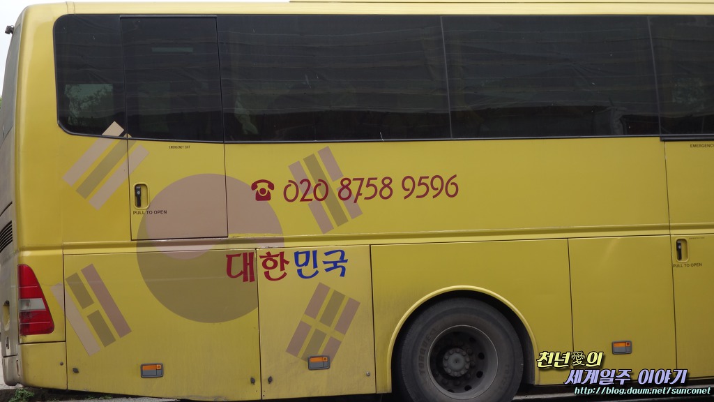 버스 정류소에서 버스를 기다는데 반가운 한글이 보인다. 한국 패케지팀이 이용하는 버스인듯...
