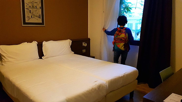 호텔 창밖으로 보이는 마을 풍경이 정감있다.