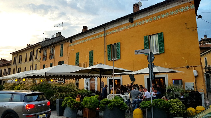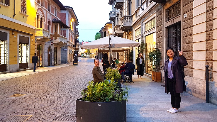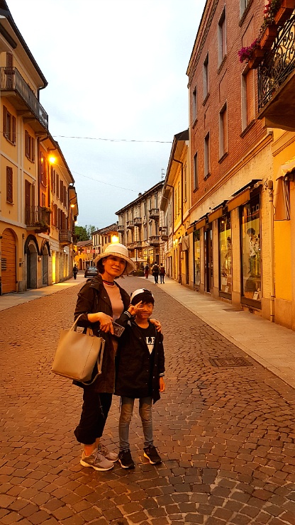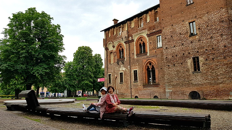 숙소 바로 옆에 있던 비스콘티 성 벽면을 배경으로 떠나기 전 짝꿍과 기념 삿을 찍어보았다.