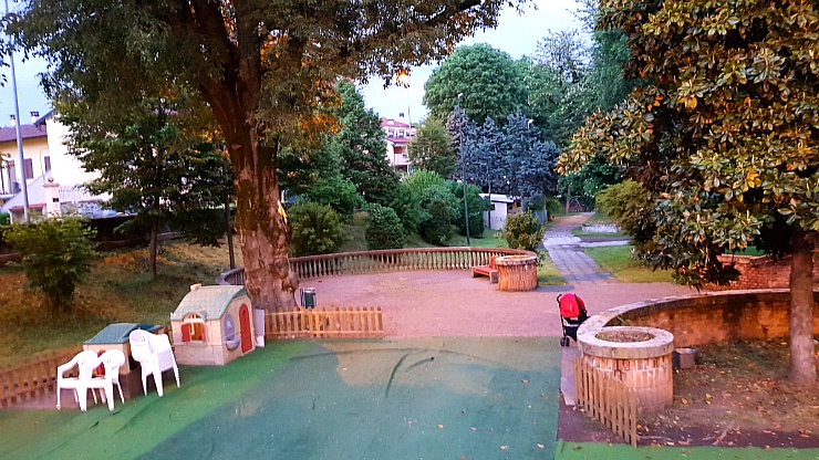 마을 공원... 아이 엄마들 몇몇이 모여 공원에서 노는 아이를 지켜보며 이야길 나누고 있다.