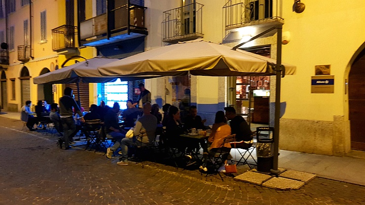 사람들은 노천카페에 앉아 음주문화를 즐기고 있다.