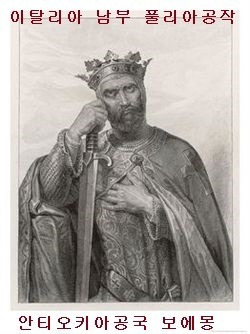 노르만족 풀리아 공작 보에몽(보에몬드)은 조카 탄크레디와 함께 1만 3천 으로 참전합니다.