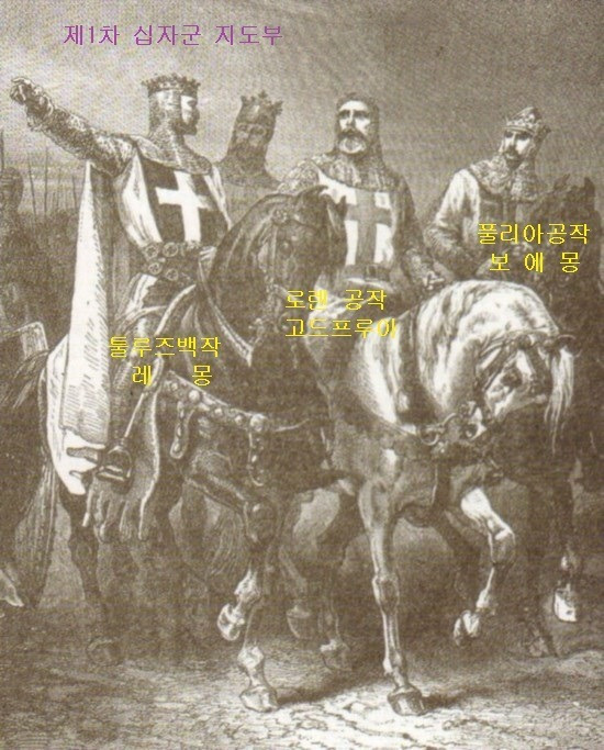 2,500명을 거느린 하로렌 고드프루아의 동생 "보두앵" 과 노르만 타란토 공작 보에몽의