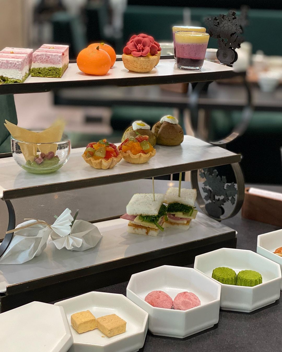 ▲후기(식신 이웃집강아지): 애프터눈 티를 많이 먹으러 다녀봤지만, 한국식 디저트들이 나와 색달랐음. 꽃 모양, 감귤 모양 등 먹기 아까운 비주얼의 다과들이 나와 눈과 입이 행복했음.