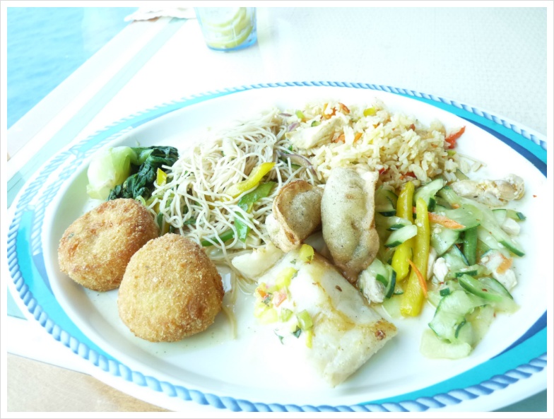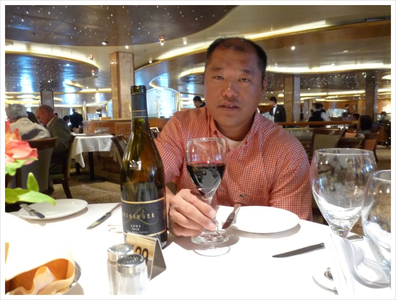 이렇게 된 이유는 일단 함께 동행하신 이모와 이모부께서 저처럼 술에 목맨 분들이 아닌데다, 하루는 이모부님께서 제가 수고한다며 배 안에서 파는 와인 한 병을 식사때 사셨기 때문이기도 합니다. 게다가 하루는 바깥에서 맥주를 너무 마시고 들어왔고, 7박8일의 크루즈 기간동안 두 번은 아예 정찬 식당에 내려가질 않았습니다. 기항지 관광이 늦어져 정해진 정찬 식사 시간이 지나 아예 배 14층에 있는 부페에 가서 먹는 것이 편하게 느껴지기도 했습니다.