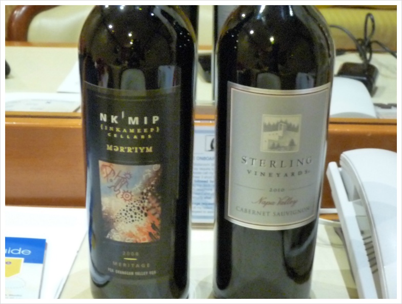 어쨌든, 배가 유진에 기항한 후 알래스카 맥주 공장 견학으로 이어져 열심히 맥주를 마시고 돌아온 저는 그날 저녁은 그냥 건너뛰고 잤고, 그 다음날은 크루 수정 양의 충고에 따라 캐나다 와인인 엔카밉의 메리티지를 따서 콜크를 뽑아 뒤집어 꽂아 부페로 가지고 올라갔습니다. 이 또한 강건한 와인이라 아니할 수 없었습니다. 이 진득함, 캐시스에 녹아 든 시럽 같은... 능히 앞으로도 10년은 너끈히 버틸 수 있는 와인이었는데... 6, 7년 보관했다고 해서 와인이 사그라들지 않는 것들이 간혹가다가 이리 있는 모양입니다. 그리고 무엇보다 코키지 차지 프리. 각종 산해진미를 먹으면서 마신 와인은 앞으로 캐나다 와인이 어떤 식으로 변해갈 것인가 기대를 하지 않을 수 없도록 만들었습니다. 이미 해당 와이너리나 와인들은 제 블로그에서 적어도 한번씩은 이야기가 됐을 터. 그리고 스털링 같은 경우는 많은 사람들이 이미 알고 있는 와인이니만큼 특별히 설명 붙이진 않으렵니다. 그저 사진으로 감상하셔도 될 터. 하하.