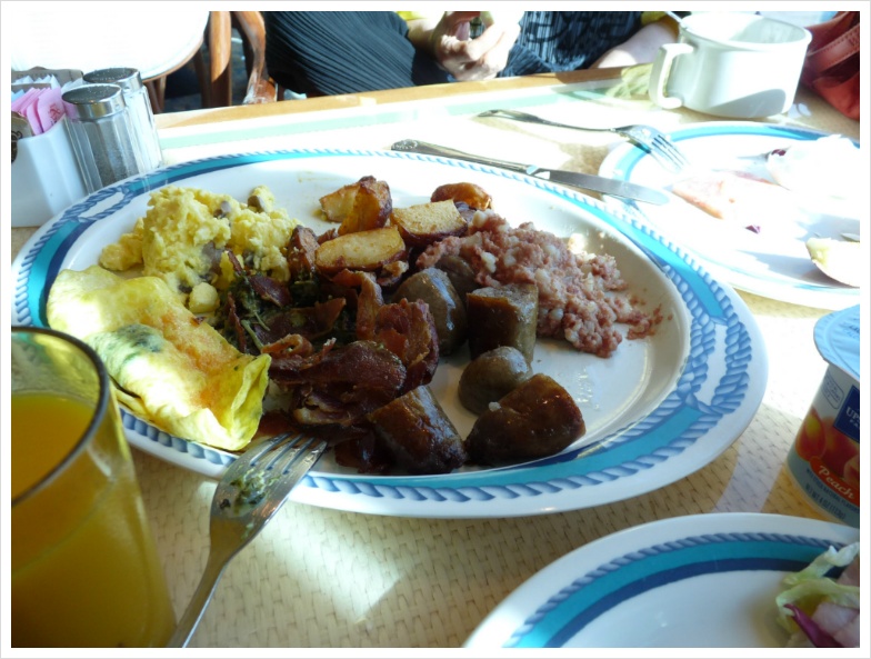 여기서 만난 한인 가족 분들은 아예 소주까지 갖고 타셨더군요. 거동하는 식구가 스물 여덟 분이었으니, 반입양도 꽤 됐을 거라는 생각도 듭니다. 크루즈 식당의 부페에서 소주에 얼굴이 불콰해지신 분들 옆에는 진로 소주 병이... 재미있더군요. 어쨌든, 크루즈 여행이 주는 가장 큰 즐거움 중의 하나가 '먹는 것'이라는 사실은 매우 분명합니다.