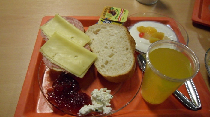 요건 호스텔 아침식사에요. 보통 호스텔들 아침 기본이 저래요. 햄, 치즈, 빵, 채소, 잼~