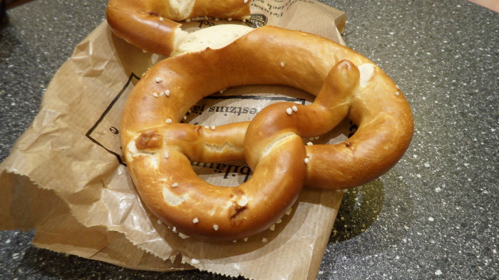 독일 명물 프레첼입니다. 굵은 소금 때문에 꽤 짜게 느껴져서 소금을 털어내고 먹었어요.
