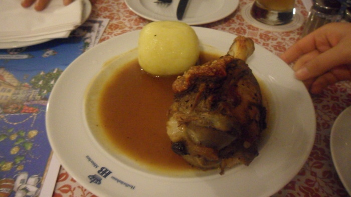 뮌헨에서 유명한 비어홀 호프브로이에서 먹은 것들이에요.