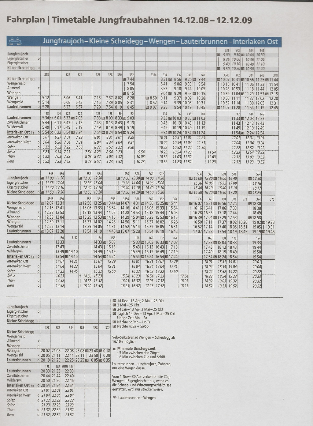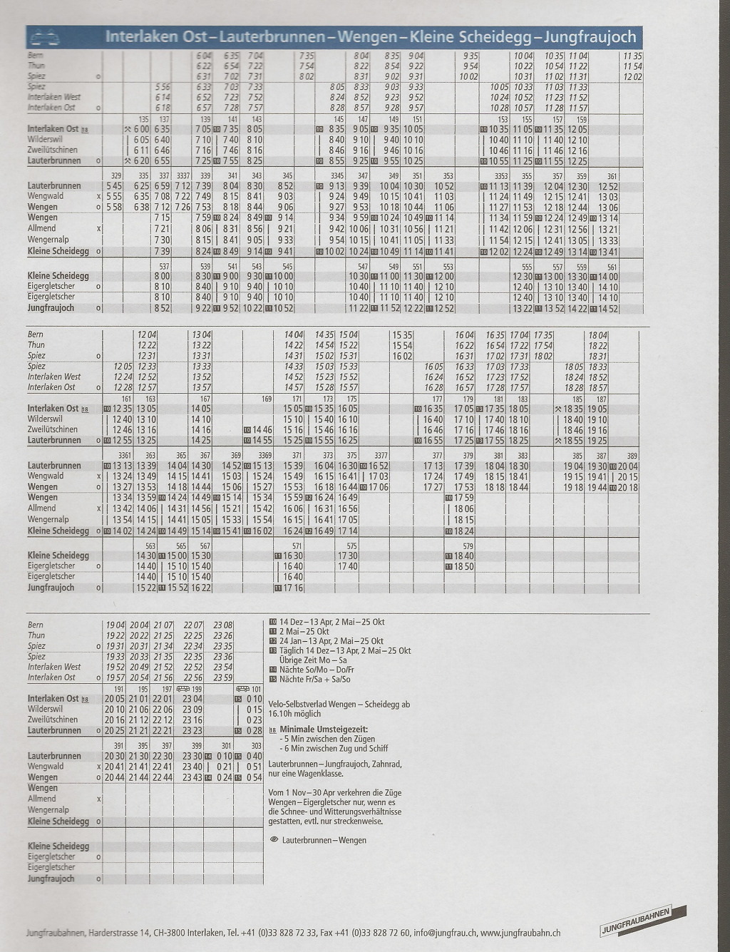 | Jungfraujoch and to Wengen |