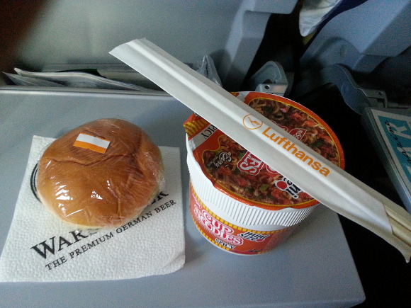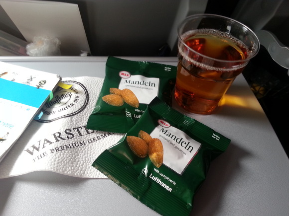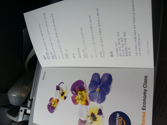 비행기 탑승 한 후에 계획한대로 자리를 바꿀 수 있었다. 왼쪽 좌석 두 자리에 나란히 앉아 여행의 설렘을 온몸으로 만끽하는 순간이었다. 독일 항공이었지만 우리 나라 승무원이 네 명 타고 있어 일단 안심이 되었다. 그 네 사람이 무척 열심히 돌아다니며 서비스를 하는 바람에 심지어 우리나라 비행기 인것 같은 착각이 들 정도였다.
