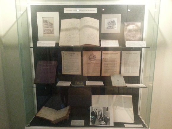 ->괴테 관련 서적들이 유리관 안에 보존되어 있었다.