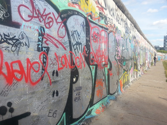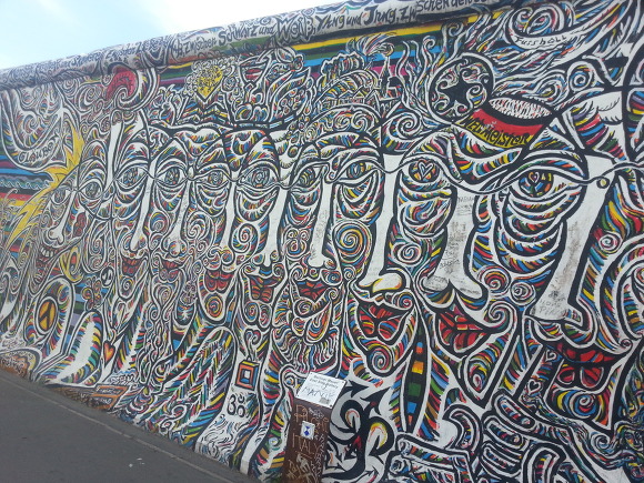 츨구도 여러 군데라 인포메이션 찾는데 한참 헤멨다. 베를린 일정이 3박 4일이라 베를린 웰컴 카드를 살까 고민을 했으나, 일단 설명서만 받아 나왔다. 숙소에 도착해서 민박집 사장님께 여러 정보를 좀 주워 듣고나니 웰컴카드를 안 사길 잘했다. 짐을 푼 후 바로 베를린 장벽으로 가 본다. 독일 통일의 상징인 베를린 장벽을 보니 느낌이 이상했다. 길게 펼쳐진 장벽 양쪽으로 아티스트들이 그림을 그려 놓았다. 분단되었었던 독일의 아픔은 사라졌고, 장벽에 그려진 그림을 구경하는 관광객들로 넘쳤다. 나도 그들 틈에서 사진을 찍어 보았다.