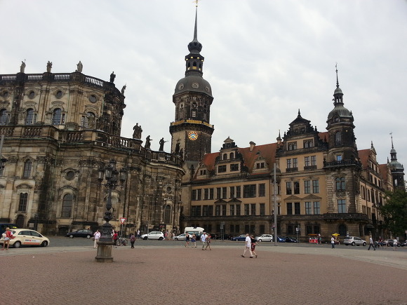 늦은 아침을 먹고 드레스덴으로 옮겨왔다. 올 때는 날씨가 괜찮았다. 드레스덴 성을 보고, 전망대도 들렀다가 츠빙거 궁전을 보고 나오는 길에 식당에서 밥먹는데, 비가 억수같이 쏟아져서 가게 안으로 대피했다. 정말 무서울 정도로 비가 많이 와서 순식간에 물바다가 되어 버렸다. 그치겠지 하고 파라솔 밑에 있다가 쫄딱 젖어버린 다음에야 대피를 했다는 슬픈 전설이... 폭우가 20분 정도 내리다 거짓말처럼 그치는데 참....얄궂다..하늘이 궂어 저녁때 돌아다니려던 계획은 포기하고 호텔에서 쉬어야 했다.. 조금 아쉬움이 남는 드레스덴이다.. 독일 일정 마지막날인데..... 쩝...