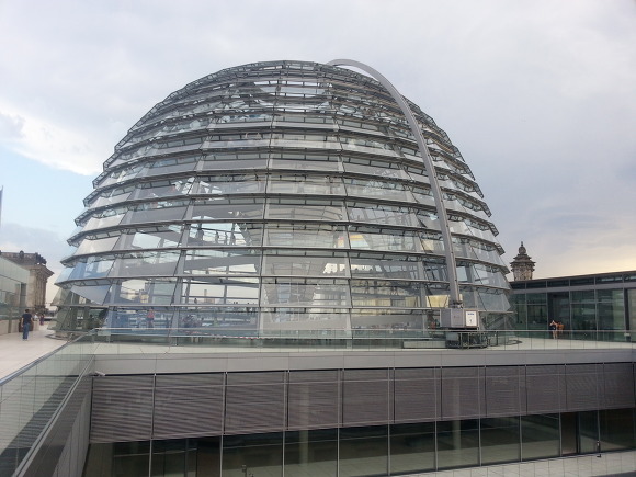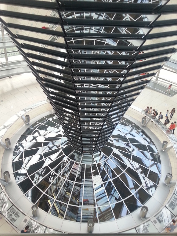 -> 국회의사당 돔. 요 돔 안에 유리로 된 나선형 경사로가 있다. 이곳이 관람이 허용되는 곳인데, 들어가기 위해 공항 검색대같은 곳을 거쳐야 한다. 4층까지 엘리베이터를 타고 가서 거기서부터는 나선형 경사로를 타고 걸어올라간다. 위쪽이 뻥 뚫려 있어 하늘이 보인다. 무척 덥고 어지러웠지만 가볼만했다.
