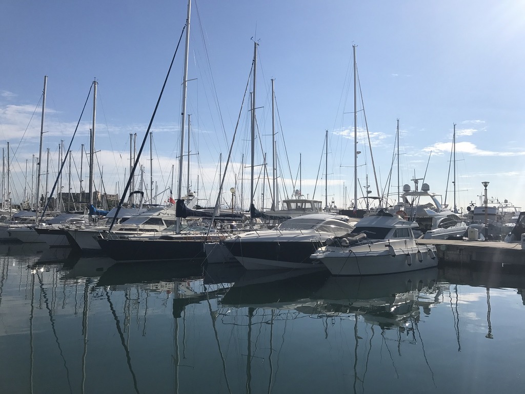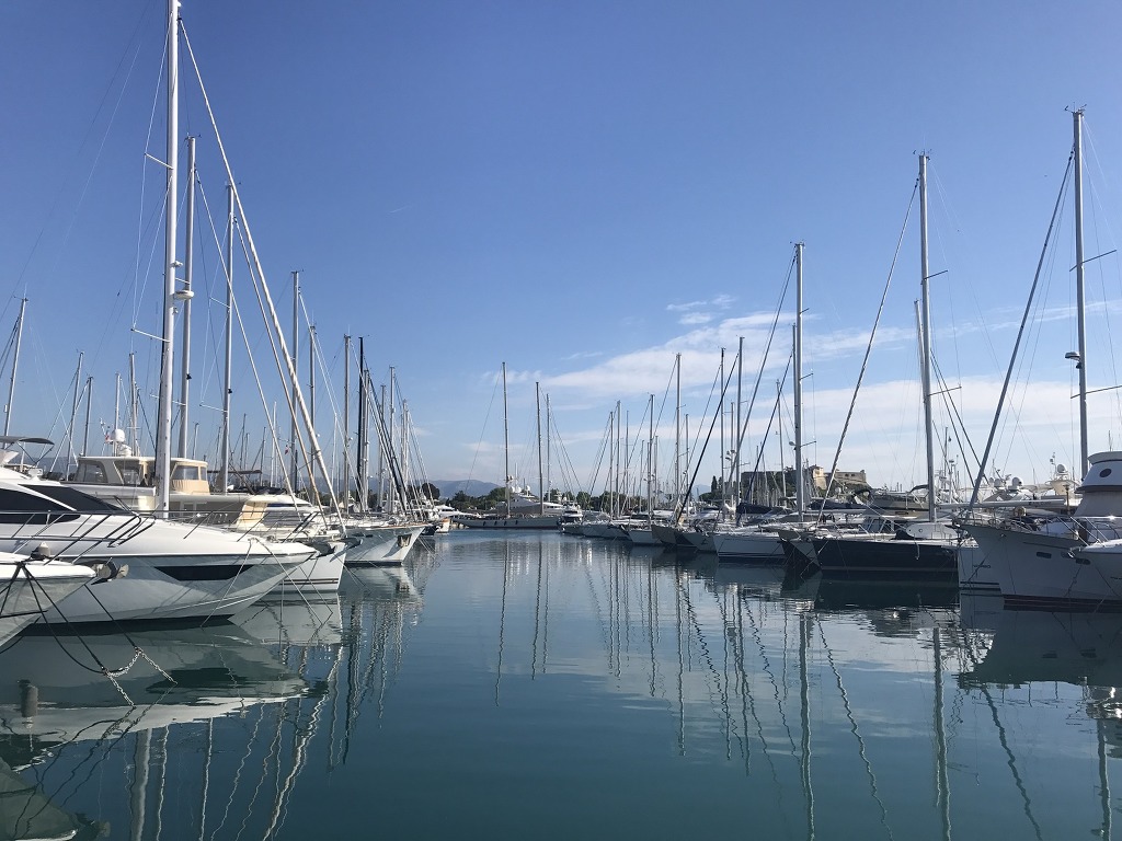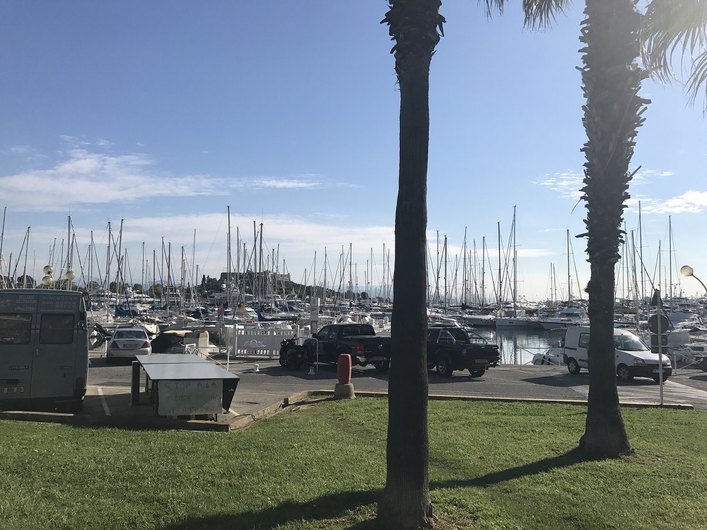 하늘을 찌를 듯 빼곡히 솟아있는 돛대들 너머로 앙티브성이 보인다.