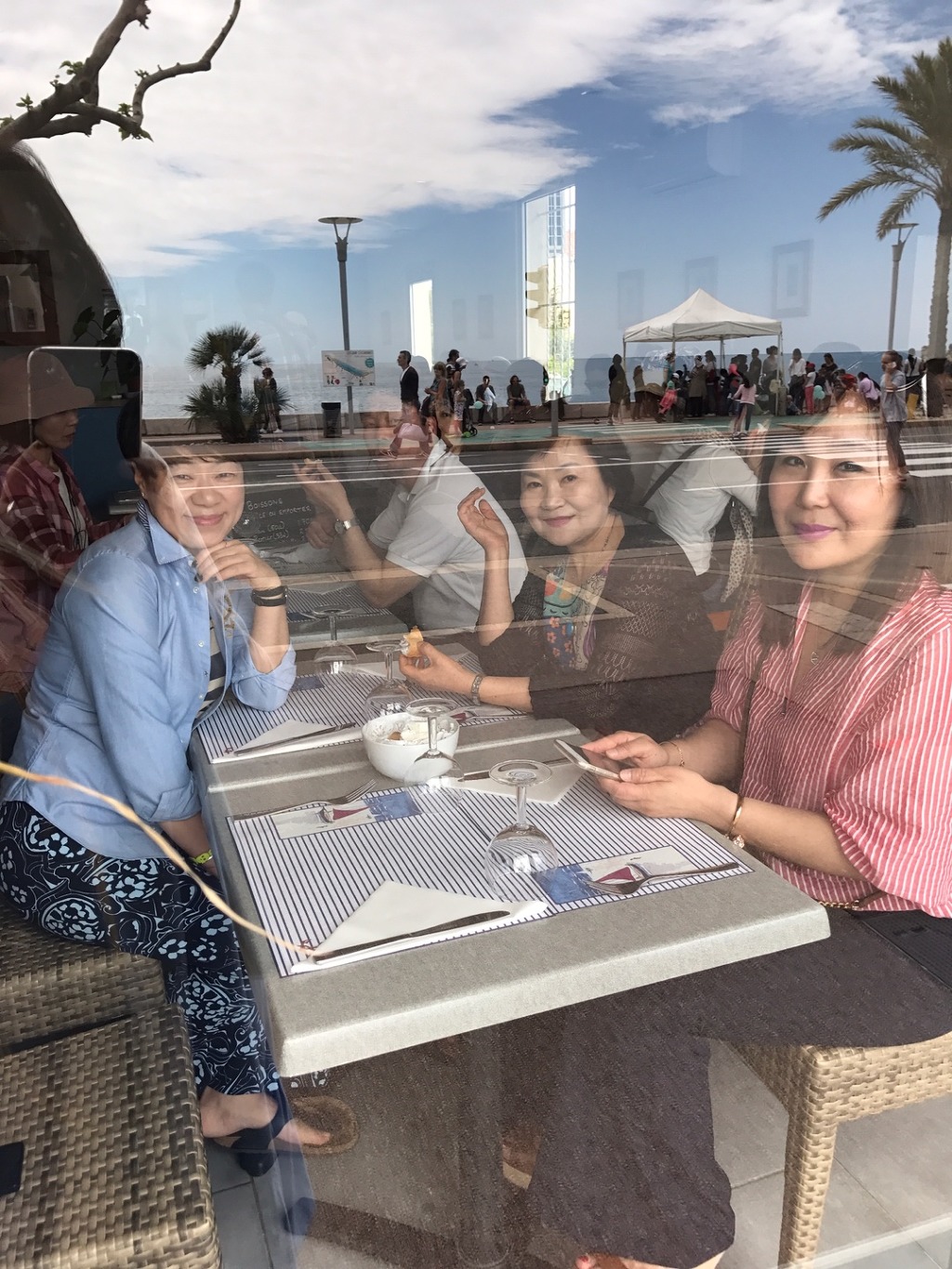 음식을 기다리는 동안 밖에서 우리를 찍어주는 혜정언니.