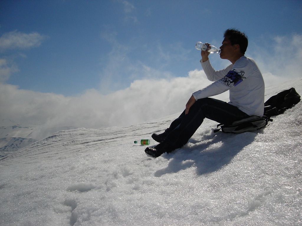 이제 어느덧 하산할 시간~~ 내려가는것도 쉽지않다. 푹푹빠지는 깊은 눈땜시 양말 다 젖고 발은 얼어버리는데 이럴때 끓는 땅이 있단건 정말 행운이다~ 거기서 언발 녹이고 젖은 양말 쫘악~~짜고 다시 하산~ 이런식을 4~5번 반복