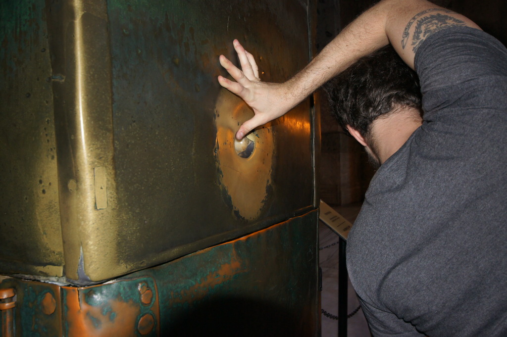 그러나 이 방문을 열자 수리 당시 사용했던 10톤이나 되는 철재 받침대와 각종 보수에 필요한 물건들, 보수 설계도,