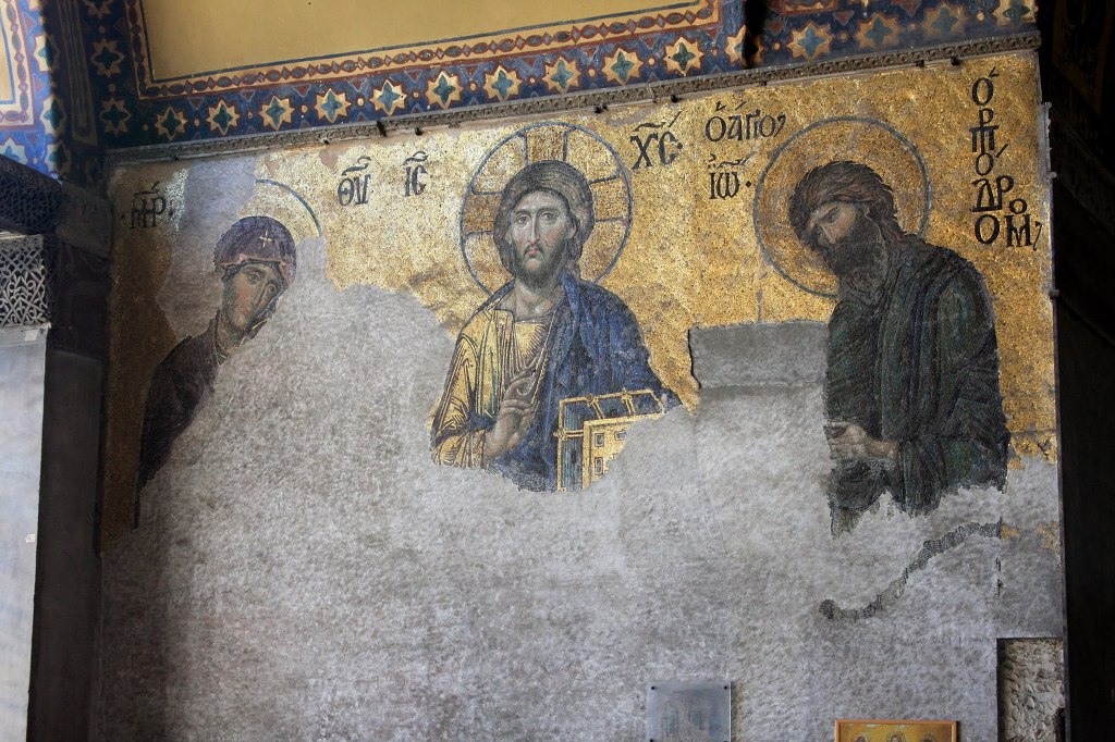 터키에서 가장 유명한 유적 중에 하나인 성 소피아 천정에서 드디어 160년 동안 얼굴을 덮었던