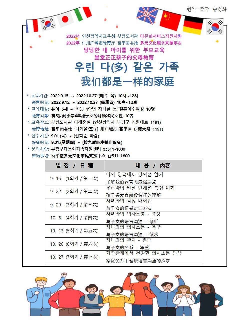 알리미봉사단 다국어번역소식 (2022년 8월) -2 작성자부평구다문화|작성시간22.11.29|조회수4 목록 댓글 0 글자크기 작게가 글자크기 크게가 다음검색 현재 게시글 추가 기능 열기 북마크 공유하기 신고 센터로 신고 댓글 댓글 0 댓글쓰기 답글쓰기 댓글 리스트