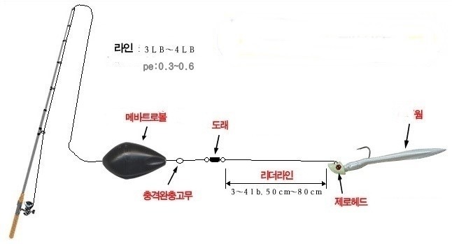 보편적이고 아주 기초적인 아징 채비그림을 올려 보았습니다.