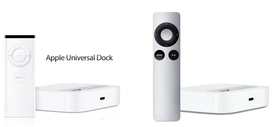 일단 신형 유니버셜 독에는 아이팟.아이폰 충전기가 함께 포함되어 있고 리모컨도 기존 플라스틱 재질의 리모컨이 아니라 알루미늄 외관으로 만들어진 애플 리모트가 함께 포함되어 있습니다.