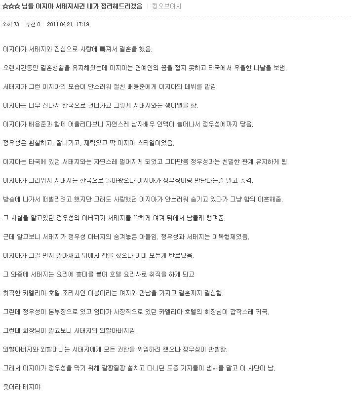[스크랩] 킹여방 여시의 센스돋는 서태지/이지아 사건 정리 작성자잉걸불|작성시간11.04.24|조회수336 목록 댓글 5 글자크기 작게가 글자크기 크게가 웃어라 태지야 ㅋㅋㅋㅋㅋㅋㅋㅋㅋㅋㅋㅋㅋㅋㅋㅋㅋㅋㅋ동해가 울고가겠어ㅋㅋㅋㅋㅋㅋㅋㅋㅋㅋㅋㅋㅋㅋㅋㅋㅋ 다음검색 스크랩 원문 : *여성시대* 차분한 20대들의 알흠다운 공간 현재 게시글 추가 기능 열기 북마크 공유하기 신고 센터로 신고 댓글 댓글 5 댓글쓰기 답글쓰기 댓글 리스트 작성자살기좋은인천 | 작성시간 11.04.25 ㅋㅋㅋ 작성자vjrm | 작성시간 11.04.25 ㅋㅋㅋㅋㅋㅋㅋㅋㅋㅋ 작성자보라댕댕 | 작성시간 11.04.25 ㅋㅋㅋㅋㅋㅋㅋㅋㅋㅋㅋㅋㅋ 작성자화이트만좋아해 | 작성시간 11.04.25 ㅋㅋㅋㅋㅋㅋㅋㅋㅋㅋㅋ 아 진짜 진지하게 읽고 있었는데 이상하게 요즘 보는 드라마랑 닮았어 ㅋㅋㅋㅋㅋㅋ 마지막 웃어라 태지야 에서 빵 터졌네요 ㅋㅋㅋㅋㅋㅋㅋㅋㅋㅋ 작성자lemi81 | 작성시간 11.04.27 이건 아니죠..ㅜㅠ 댓글 전체보기