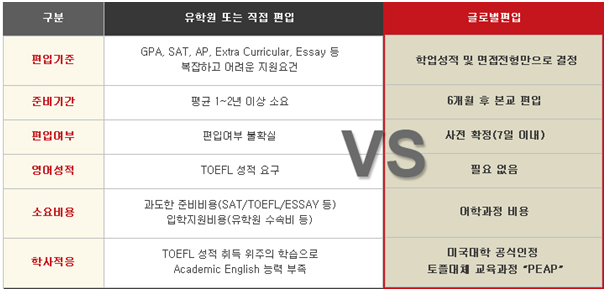글로벌 편입뿐만 아니라 다른 더 좋은 정보가 있다면 그 정보도 잘 알아보고 선택을 하는 것이 중요합니다.