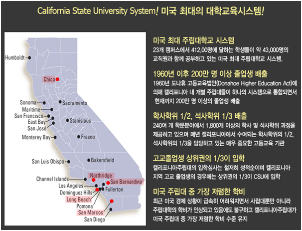 미국대학 입학 정보 중에서 미국 100위권 이내 대학인 뉴욕주립대 또는 캘리포니아주립대에 편입할 수 있는 글로벌 편입도 눈 여겨 볼 필요가 있습니다.
