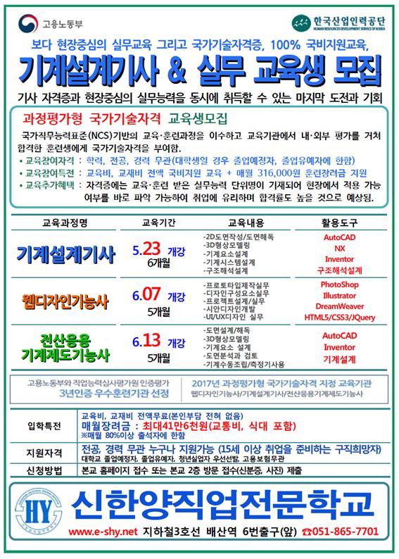 기타 자세한 사항은 신한양직업전문학교 홈페이지 www.e-shy.net 또는 051-865-7701 (월~금 09:00-18:00, 공휴일제외) 로 문의해 주세요! |